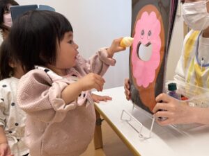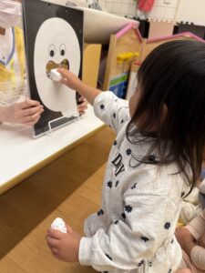 1人ずつ、ばけたくんに食べ物を食べさせてあげましたよ👻