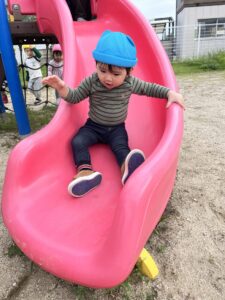 保育者に手伝ってもらいながらいろいろな遊具に挑戦したり、
