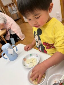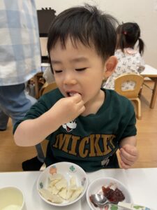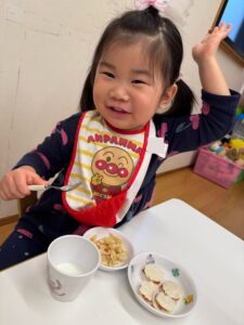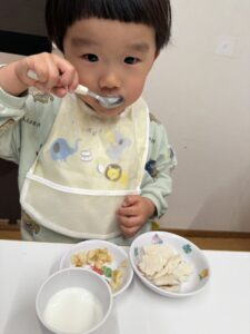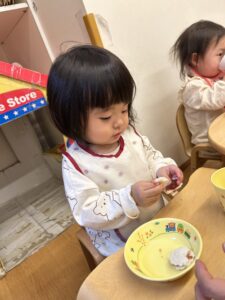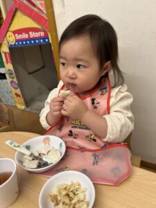 1人ずつ、ばけたくんに食べ物を食べさせてあげましたよ👻